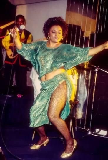Sur scène, elle s’est construite un personnage immédiatement identifiable grâce à ses coups de hanches-véritable bête de scène-, cuisses dehors , le Mutuashi , danse aux déchaînements suggestifs à couper le souffle séduit l’Afrique de l’Ouest. Les chefs d’État africains sont sous le charme de cette belle dame très sexy , on lui prête même une relation éphémère avec l’austère Thomas Sankara.